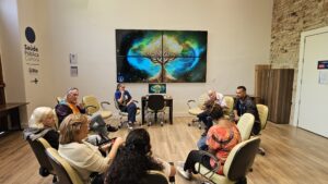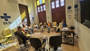 O encontro contou com uma roda de conversa acolhedora, que ofereceu aos participantes um espaço de escuta e diálogo. Cada pessoa pôde falar livremente, compartilhar experiências do dia a dia e refletir sobre o autocuidado e a saúde emocional.
