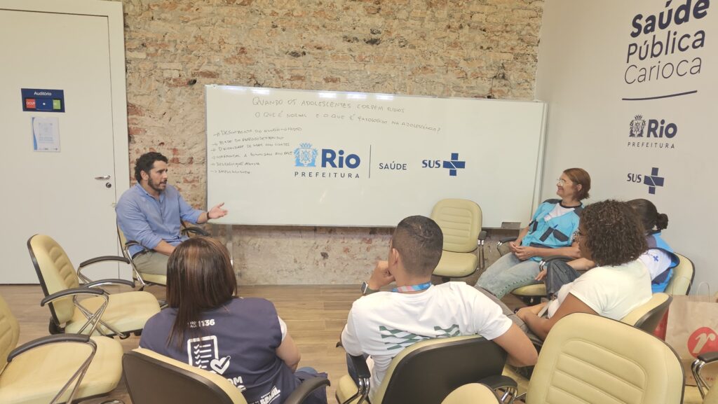 A iniciativa é direcionada aos profissionais da Atenção Primária em Saúde (APS), especialmente aos ACS, que atuam diretamente com adolescentes e jovens em seus territórios, lidando com demandas relacionadas à saúde mental. O encontro ocorre nas Unidades de Saúde Básica, favorecendo a participação dos profissionais e a adequação de suas agendas.