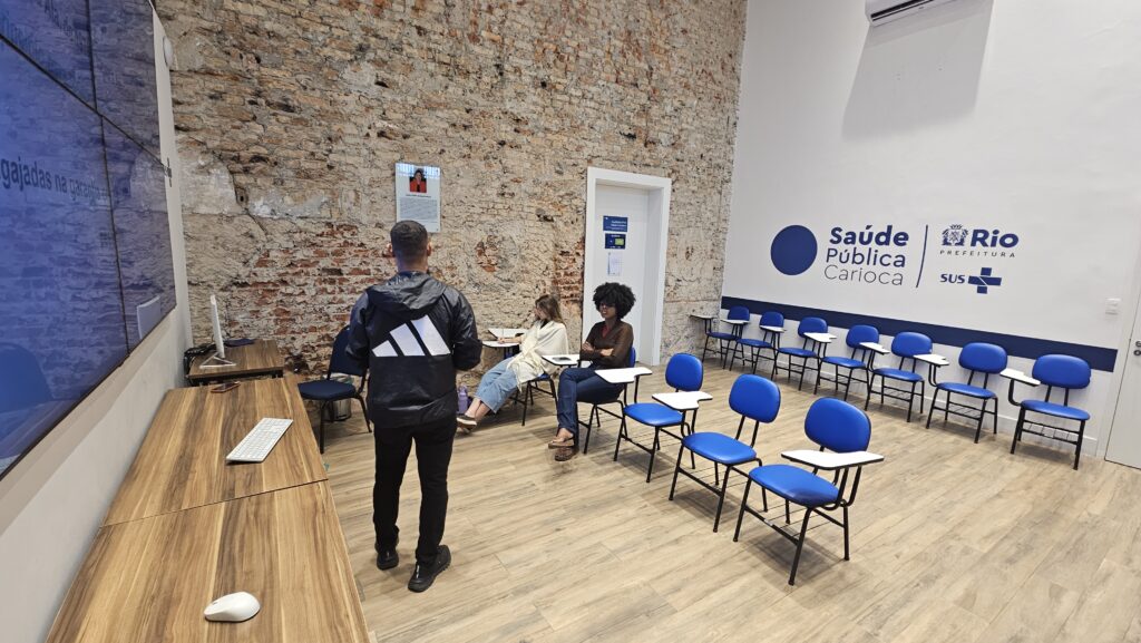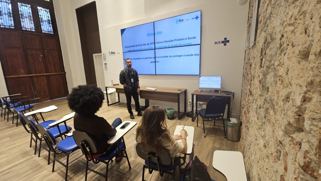 Na última sexta-feira, 19 de dezembro de 2025, no Auditório Maria Cecília Minayo, as acadêmicas do programa PET-Saúde participaram de uma aula teórica sobre a estrutura do Sistema Público de Saúde. A atividade foi conduzida pelo profissional de Educação Física Filipe Velozo, integrante do programa Academia Carioca.