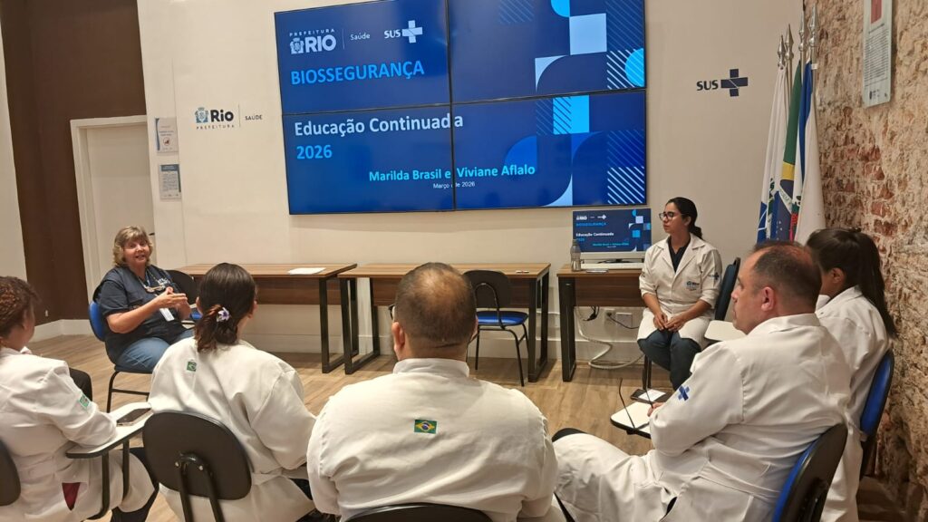 Nesta última segunda-feira, 23 de março de 2026, o auditório Maria Cecília Minayo, na OTICS-Rio, recebeu uma palestra com o tema Biossegurança na Vacinação, voltada à atualização e ao fortalecimento das práticas seguras no processo de imunização.O encontro foi conduzido pelas enfermeiras Marilda Brasil e Viviane Aflalo, que compartilharam conhecimentos técnicos e orientações práticas sobre os principais protocolos de biossegurança aplicados à rotina das salas de vacinaA iniciativa proporcionou um espaço de aprendizado, troca de experiências e esclarecimento de dúvidas, contribuindo para o aprimoramento contínuo das equipes e para a manutenção de práticas seguras e padronizadas nos serviços de vacinação.