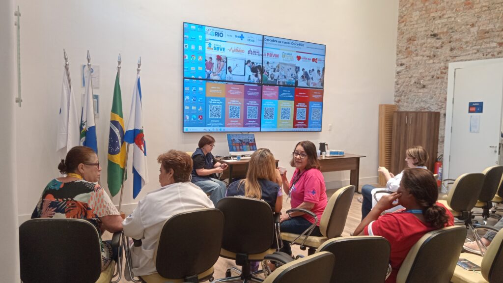 Nesta quinta-feira, 02 de abril de 2026, foi realizada a reunião mensal das chefias do Hospital Municipal Rocha Maia, no auditório Professor Hésio Cordeiro, na OTICS-Rio Botafogo, localizada no Complexo Rocha Maia. O encontro foi conduzido pela Diretora Geral, Cristina Lemos.