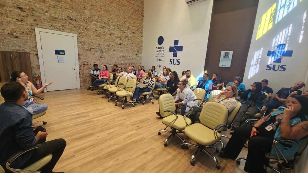 Nesta quarta-feira, 15 de abril de 2026, a Clínica da Família Luiz de Moraes Júnior promoveu uma reunião geral no auditório Professor Hésio Cordeiro, da OTICS-Rio Botafogo. O encontro contou com a participação de todos os profissionais da equipe de saúde e foi coordenado pelo gerente da unidade, Filipe Velozo.