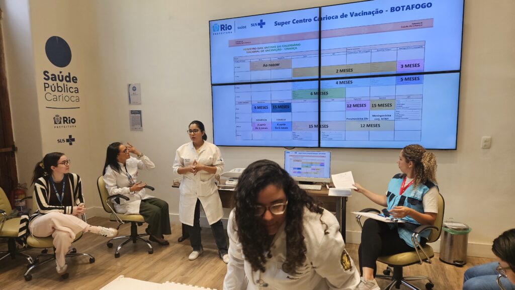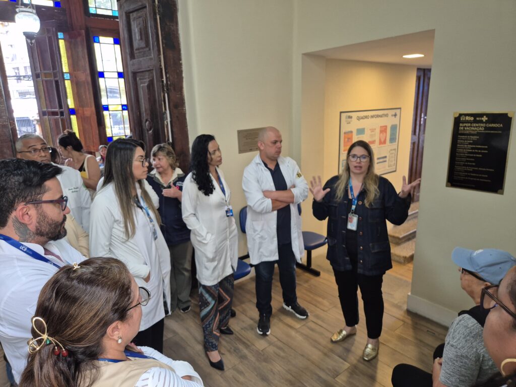 Os alunos foram acolhidos no auditório Professor Hésio Cordeiro, na Estação OTICS Botafogo, pela gerente do Super Centro Carioca de Vacinação, Adriana Desterro, e pela responsável técnica de enfermagem, Marilda Brasil. A programação teve início com uma aula introdutória sobre o funcionamento da unidade, os fluxos de trabalho e a importância da vacinação como estratégia de prevenção de doenças e promoção da saúde pública.