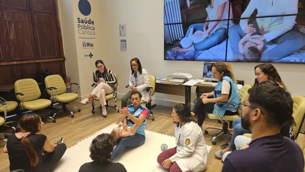 O encontro também contou com a presença da equipe do Super Centro Carioca de Vacinação, representada pela responsável técnica de enfermagem Marilda Brasil e pela enfermeira Viviane Aflalo, que abordaram a importância das vacinas no cuidado e desenvolvimento infantil.