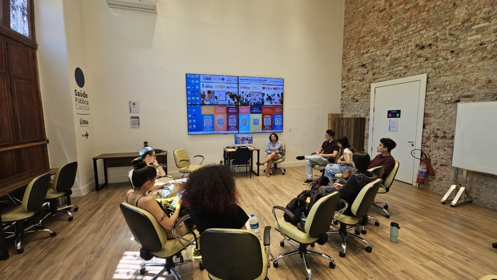 No dia 12 de novembro de 2025, o Super Centro Carioca de Vacinação recebeu Beatrice Todaro, estudante de doutorado, e Jacob Gibertini, aluno de mestrado